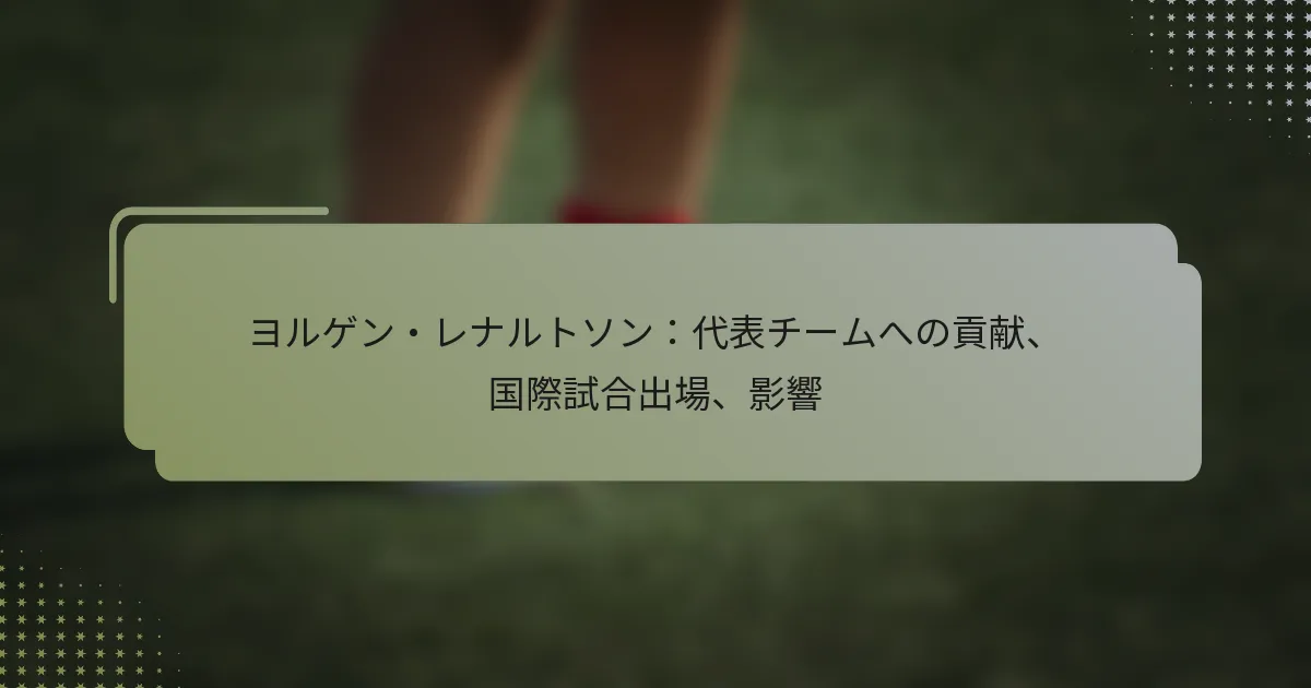 ヨルゲン・レナートソンは、ノルウェー代表チームへの貢献を通じて国際サッカーに大きな影響を与え、チームダイナミクスを形成し、若い選手を指導してきました。彼の戦術的な洞察とリーダーシップは、スポーツに持続的な遺産を残しました。
